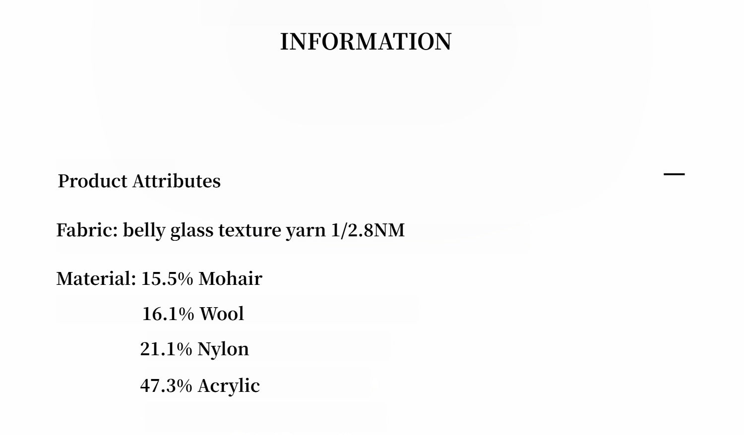This piece is a fall/winter must-have, crafted from a blend of luxurious mohair and virgin wool. The fabric is fluffy, delicate, and exceptionally warm against the skin, offering an ultra-soft, skin-friendly feel. The fine ribbed knit design is both stretchy and body-hugging, providing a slim, flattering silhouette while remaining lightweight and comfortable. The plush fibers give the garment a full, delicate texture that is both elegant and slimming. Whether worn on its own or layered, this versatile piece can create a variety of stylish looks, making it the perfect addition to any autumn or winter wardrobe.