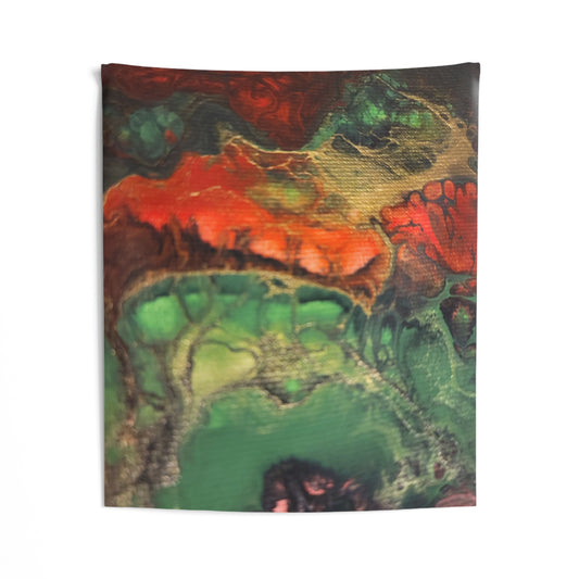 Abstract Earthtone Tapestry — Green & Rust Wall Art for Living Room